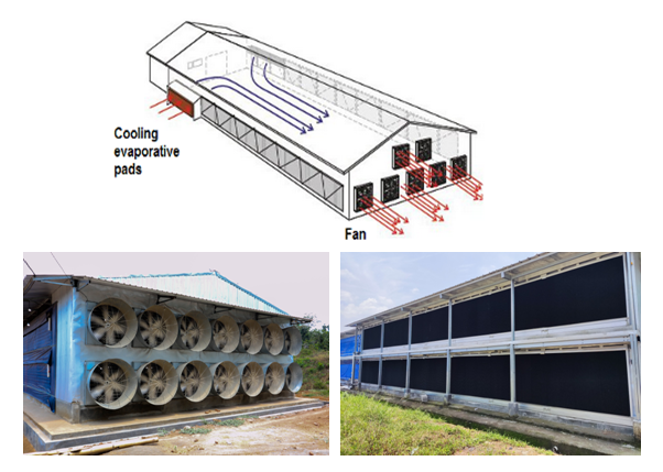 The ventilation system can remove heat, moisture, and harmful gases (CO, CO2, NH3) in the coop, and can provide the O2 needs of the chickens for optimal performance.